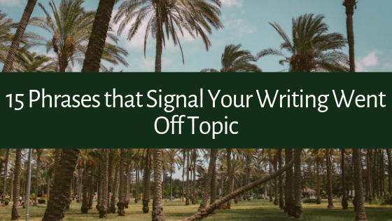 Have trouble staying on topic when writing? Here are 15 Phrases that Signal Your Writing Went Off Topic (whether you noticed or not)!